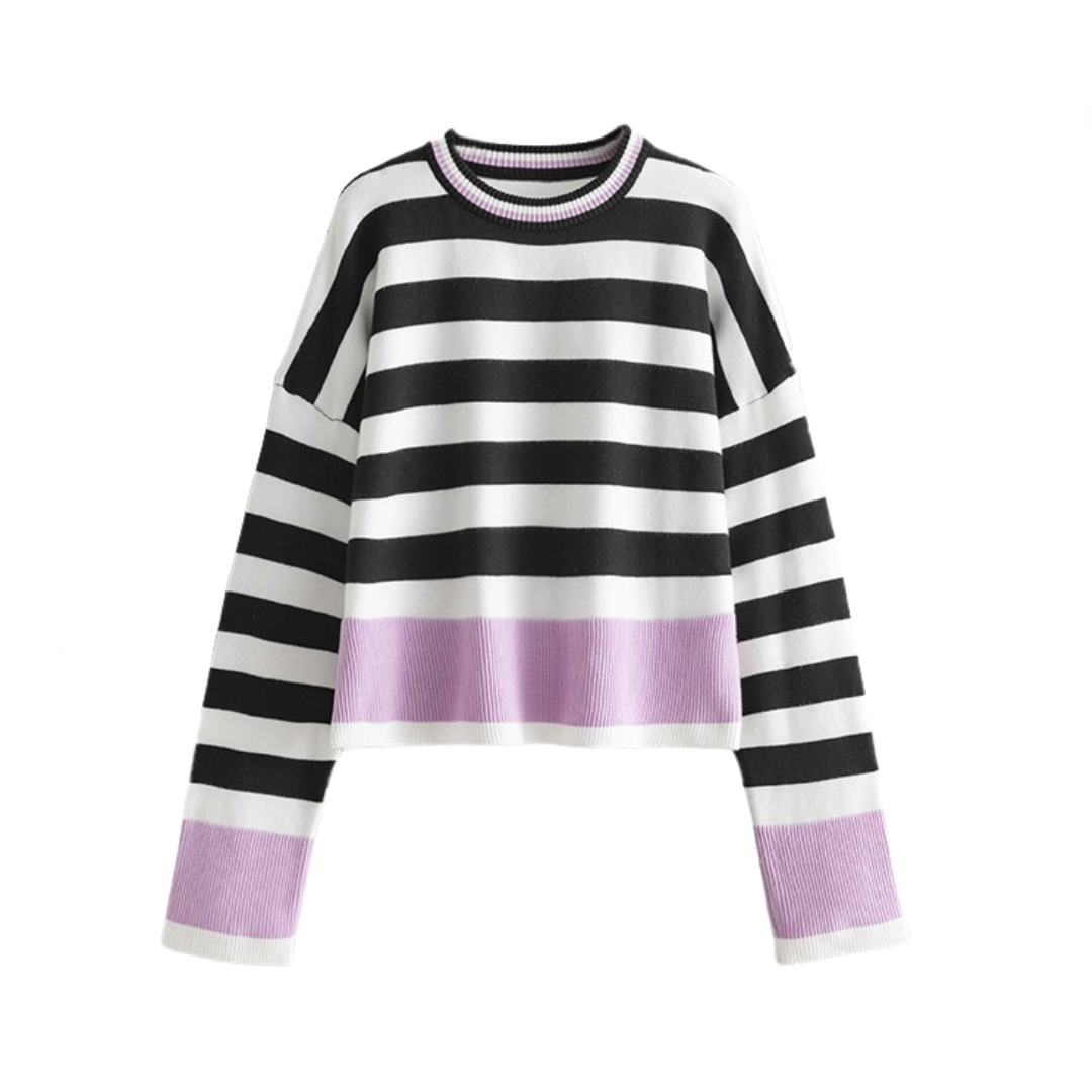 With a long sleeve and round neckline. this knitted sweater is perfect for any casual occasion. Its striped design adds a touch of sophistication. making it a versatile and fashionable addition to your wardrobe.