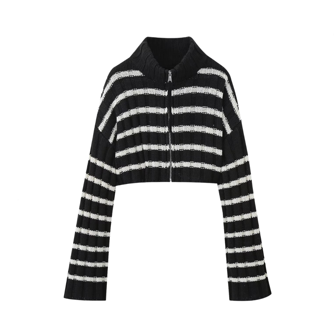 Add a touch of style to your casual wardrobe with our Casual Striped Zip Up Short Knitted Cardigan. Featuring a modern striped design and convenient zip closure. this cardigan is perfect for a versatile and comfortable look.