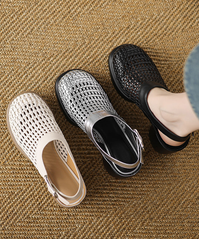 Chic Black Chunky Heel Faux Leather Sandals Hollow Out