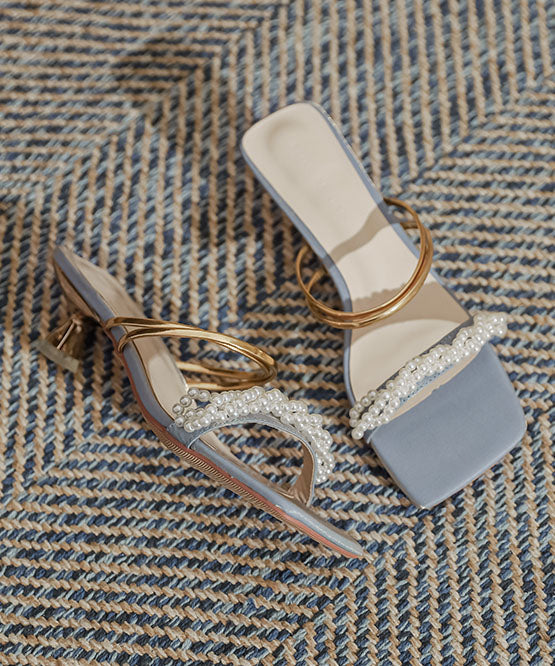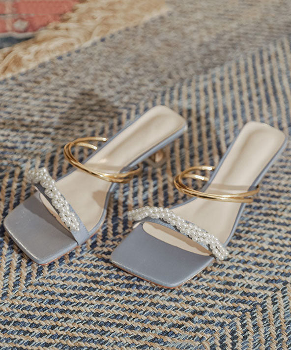 Chic Nail Bead Splicing High Heel Slippers Purple Faux Leather