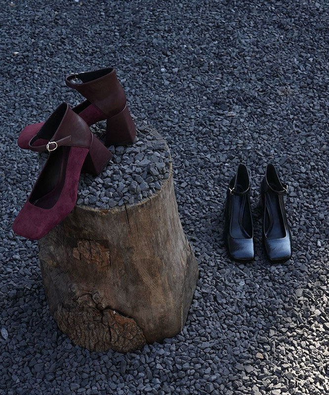 Chic Silver Buckle Strap Splicing Chunky Heel Shoes