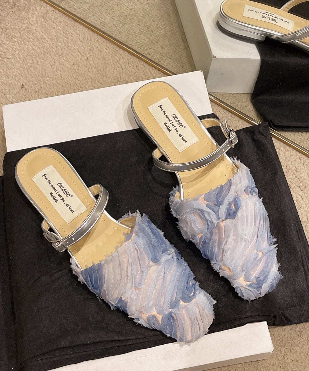 Chic Splicing Blue Cotton Fabric Buckle Strap Slide Sandals
