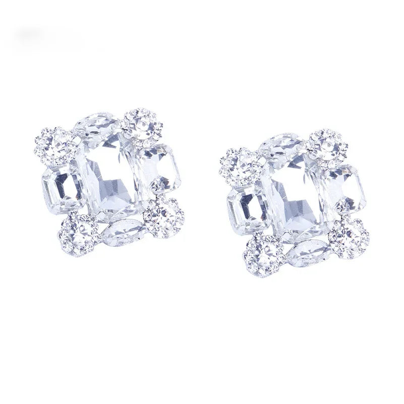 These earrings feature chunky square crystals and rhinestones that add an elegant touch to any outfit. With their unique clip design. these earrings are comfortable to wear and will make a statement at any event.