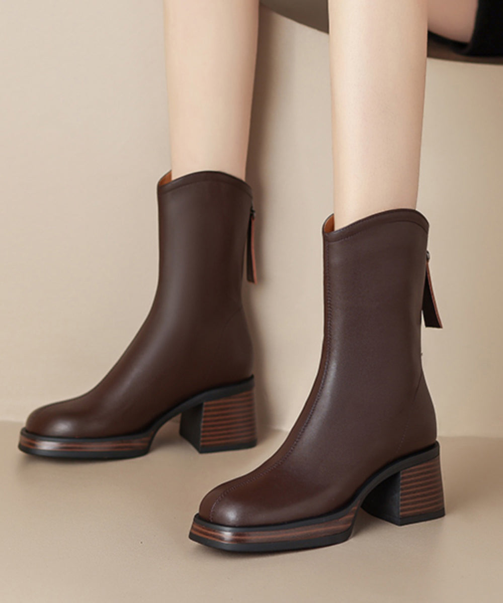 Classy Black Chunky Short Boots Fuzzy Wool Lined