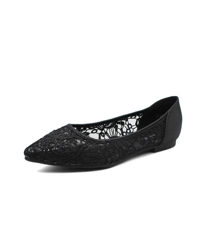 Classy Black Embroider Flower Tulle Splicing Pointed Toe Sandals