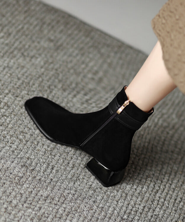 Classy Green Boots Chunky Suede Fitted Splicing Zippered