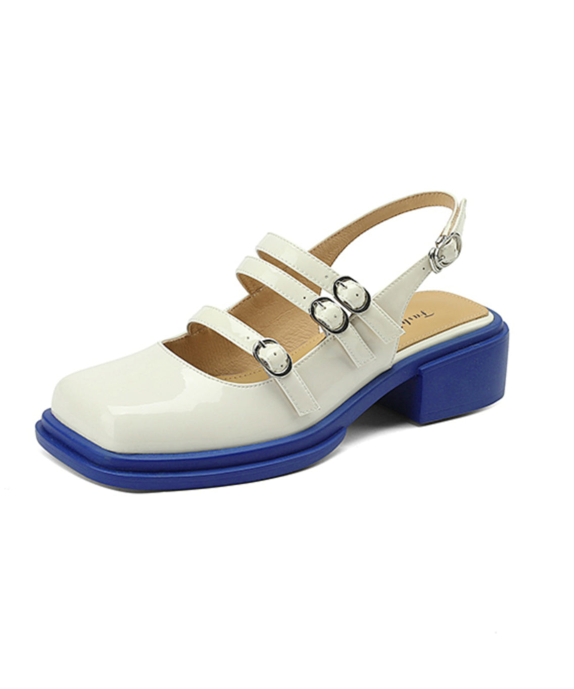 Classy Splicing Chunky Sandals Beige Sheepskin Buckle Strap