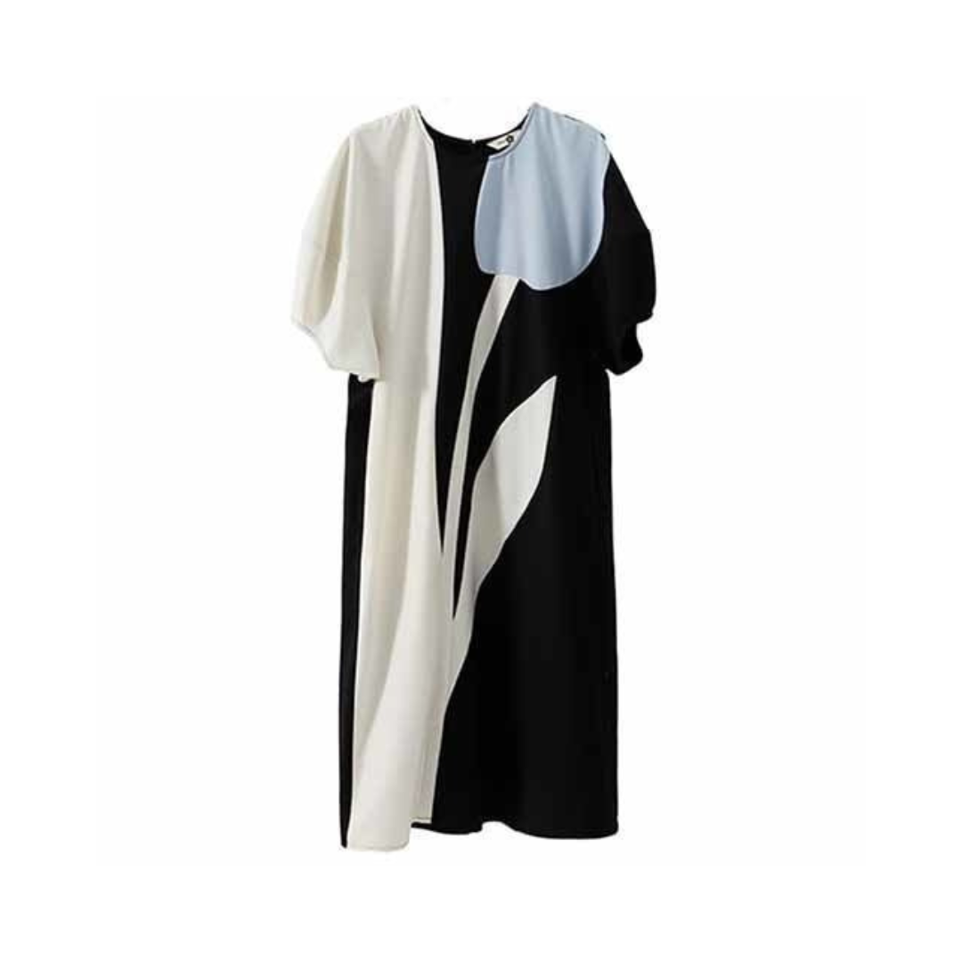 With its loose fit and midi length. this dress offers a relaxed yet chic look. The color block design adds a touch of sophistication. making it perfect for any occasion.