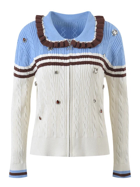This Color Blocking Beaded Knitted Cardigan is expertly crafted with a unique color blocking design and intricate beadwork. This statement piece adds a touch of sophistication to any outfit. Made from high-quality materials for a comfortable fit. this cardigan is a must-have for any fashion-forward wardrobe.