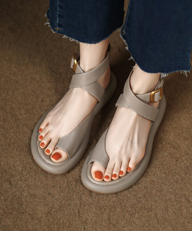 Comfy Grey Cross Strap Splicing Walking SandalsMade of:-Cowhide Leather Upper.-EVA sole- cushioned insole.