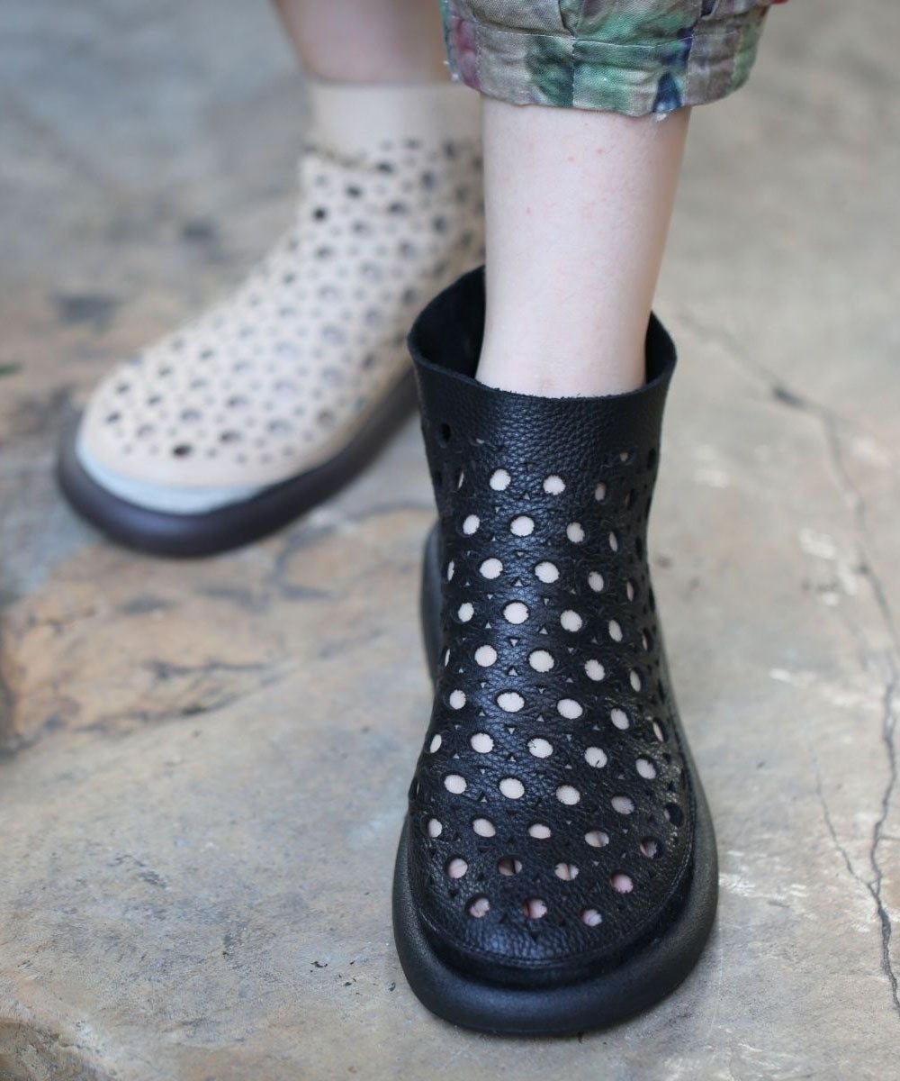 Comfy Splicing Hollow Out Boots Beige Cowhide Leather