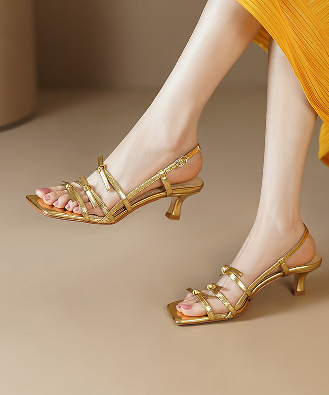 Cowhide Leather Bow Splicing French Gold Sandals Peep Toe