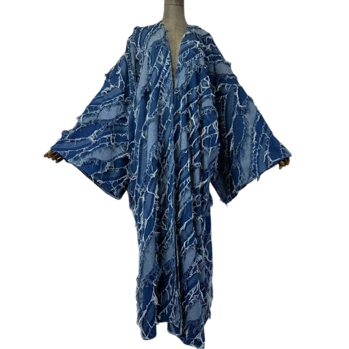 Upgrade your wardrobe with our Cozy Fringed Denim Maxi Cardigan. Made with high-quality denim. this cardigan offers both comfort and style. The fringed details add a unique touch. perfect for dressing up or down. Stay cozy and on-trend with our fashionable cardigan.