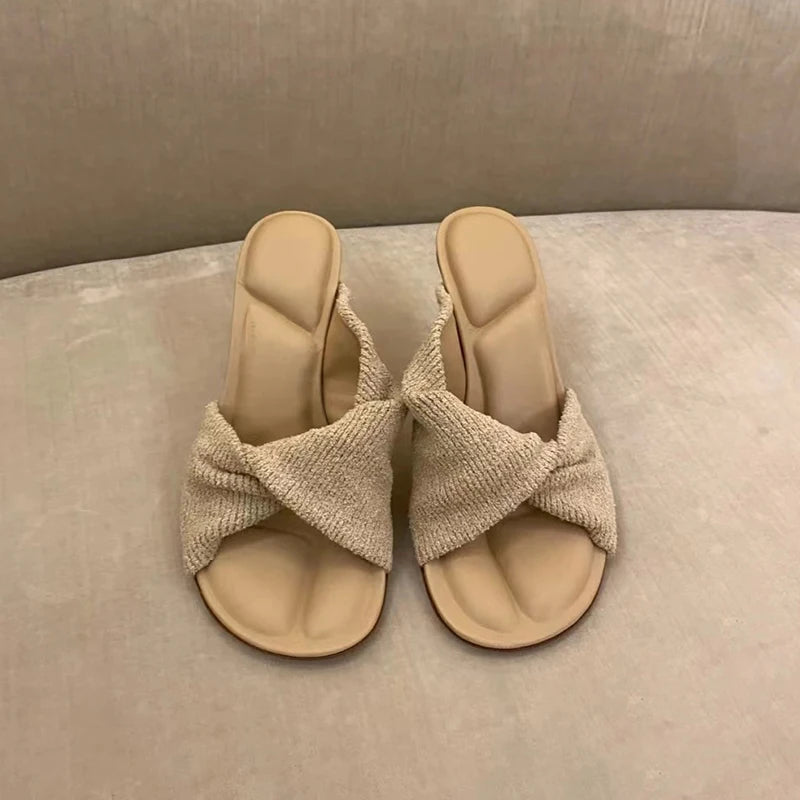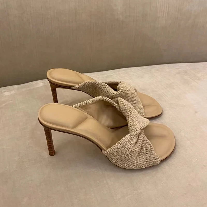 These sandals feature a chic and versatile cross knot design. perfect for any occasion. The stiletto heel adds a touch of sophistication and the cushioned insole provides all-day comfort.