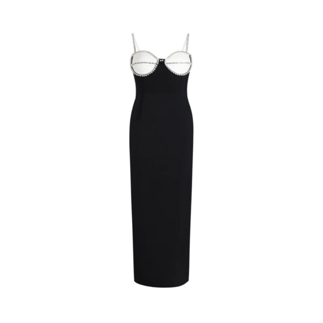 The intricate crystal embellishments add a touch of glamour to the suspender sleeves and tight-fitting silhouette. making it a statement piece. Ideal for showcasing your curves. this versatile dress is sure to turn heads and make you feel confident.