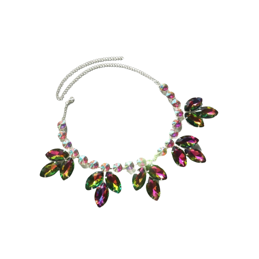 The intricate design and sparkling crystals add a touch of sophistication to any outfit. With its adjustable length. it can be worn as a choker or necklace. Perfect for any occasion. this necklace is a must-have addition to your jewelry collection.