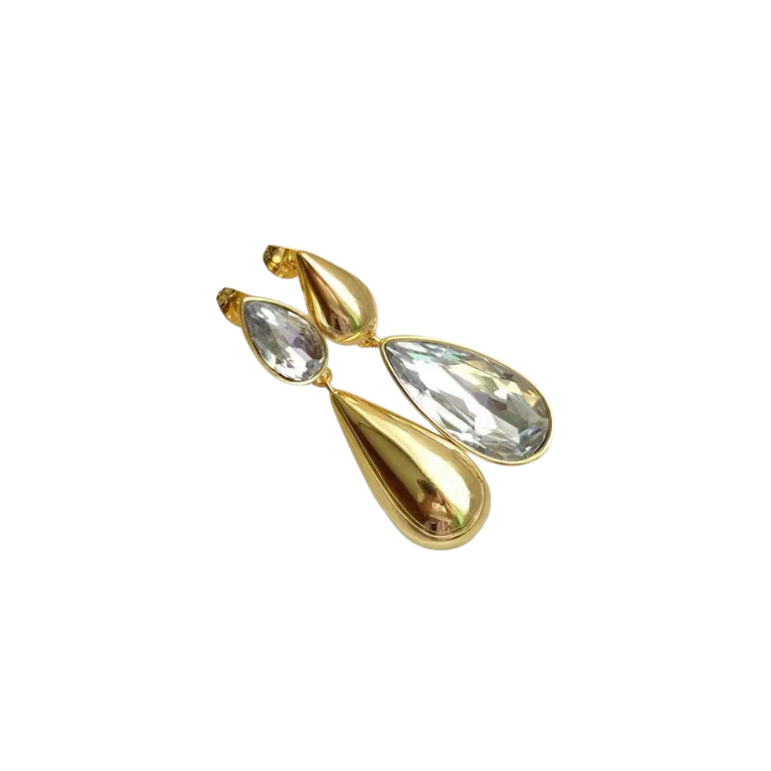 Made with elegant asymmetric crystal pendants. these earrings are sure to make a statement. The teardrop design adds a touch of sophistication to any outfit.
