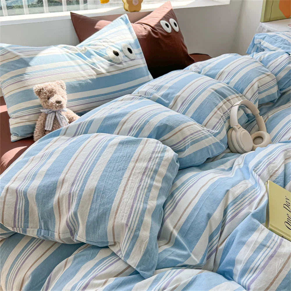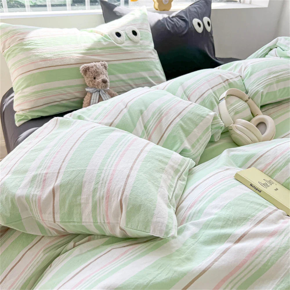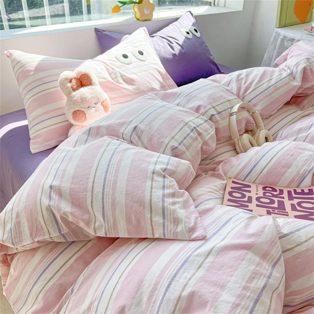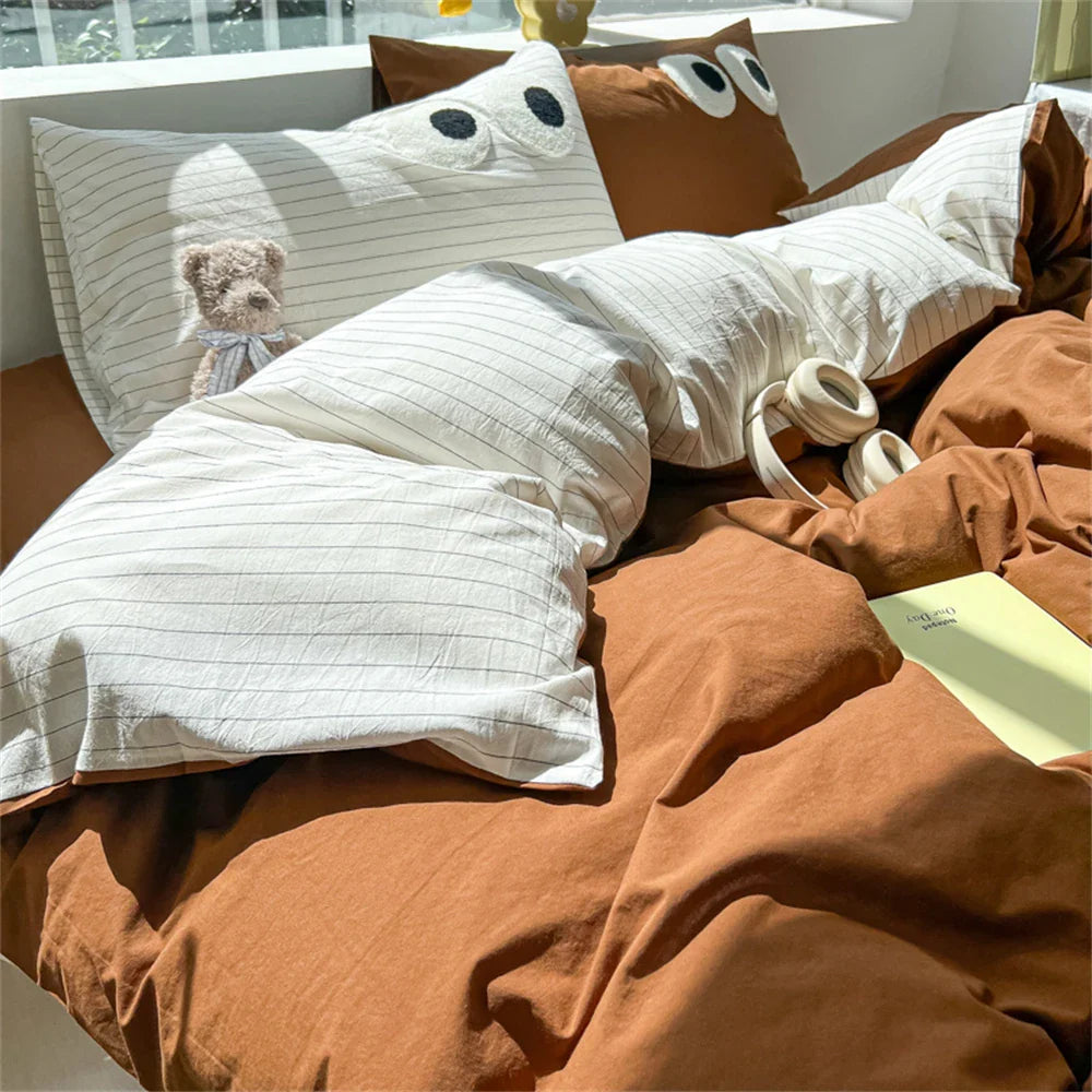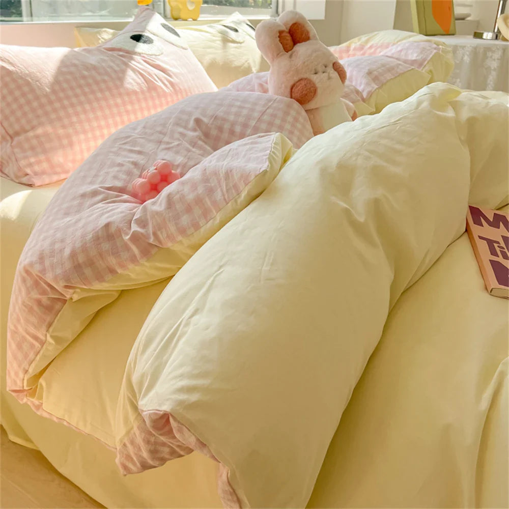 Cute Big Eyed Four Piece Set Plaid Duvet Cover Set With Sheet Bedroom Decor Skin Friendly Single Double Bedding Set Home Textile