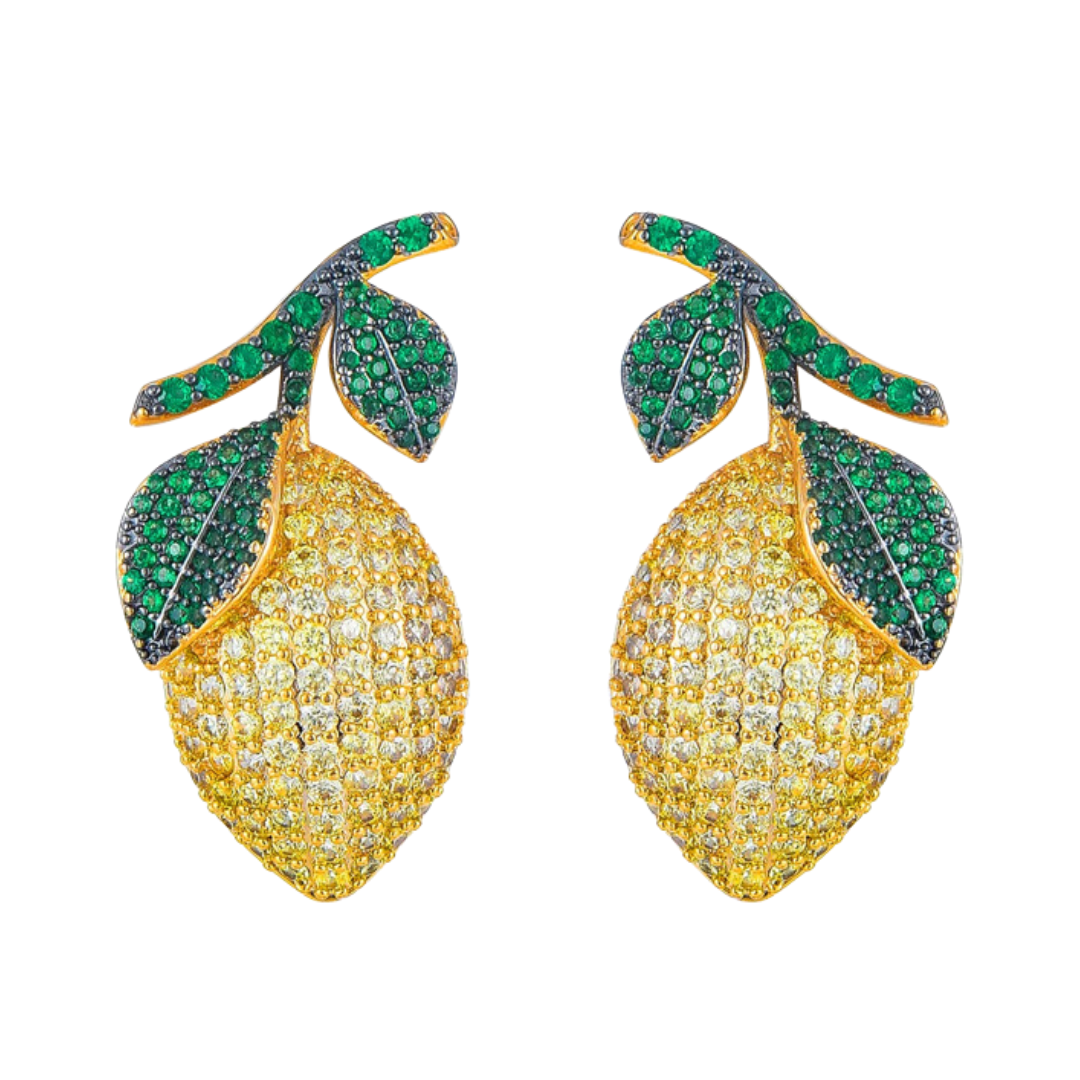 Crafted with zircon stones. these earrings add a touch of elegance to any outfit. With a cute lemon design. these earrings are the perfect accessory for any occasion.