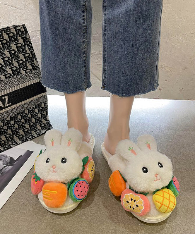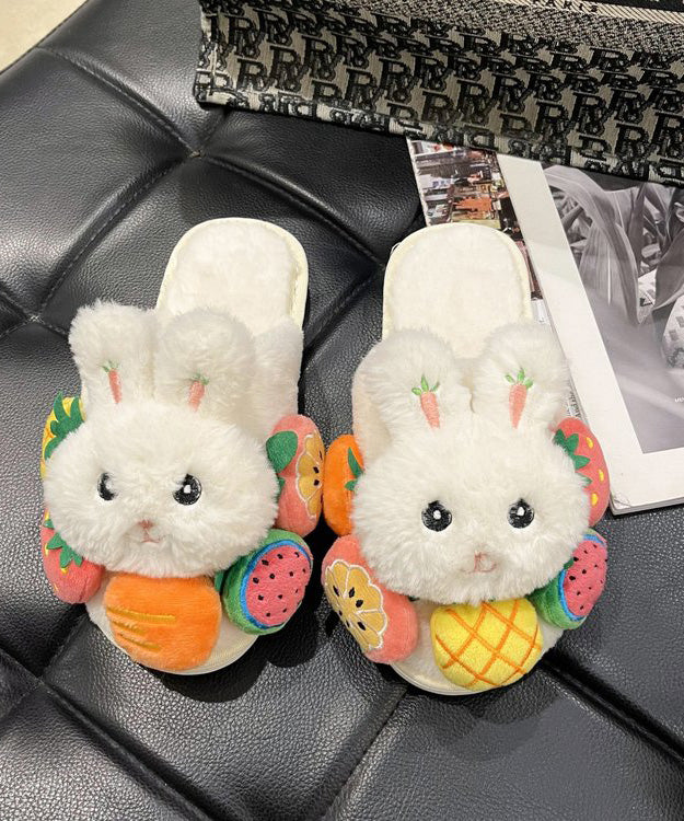 Cute Splicing Slippers Shoes Pink Fuzzy Wool Lined