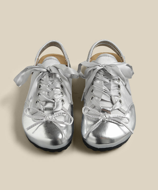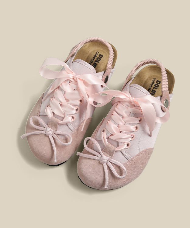 Cute Style Pink Bow Lace Up Splicing Platform Flats