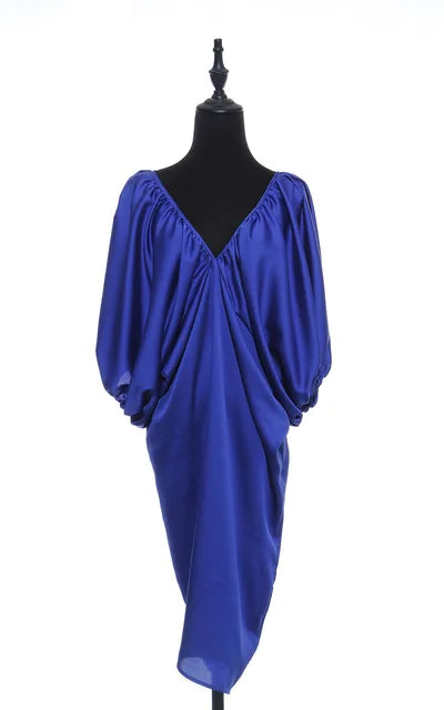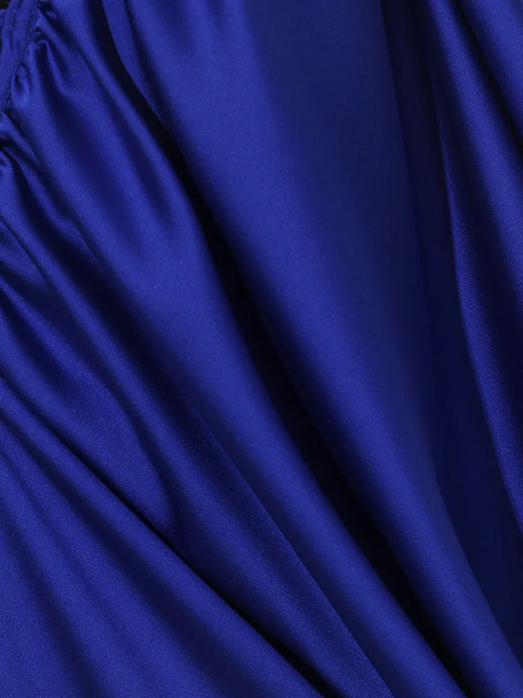 The plunging neckline and open back create a stunning silhouette. while the cross tie detail adds a touch of femininity. Perfect for special occasions and events. this dress will make you feel confident and beautiful.