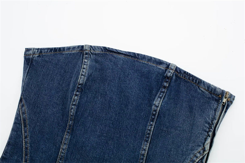 This sleeveless denim vest top is perfect for adding an edgy touch to your everyday look. With a vintage style and slim fit. this top is both casual and elegant. It features a corset design that cinches at the waist. creating a flattering silhouette. Great for autumn streetwear.