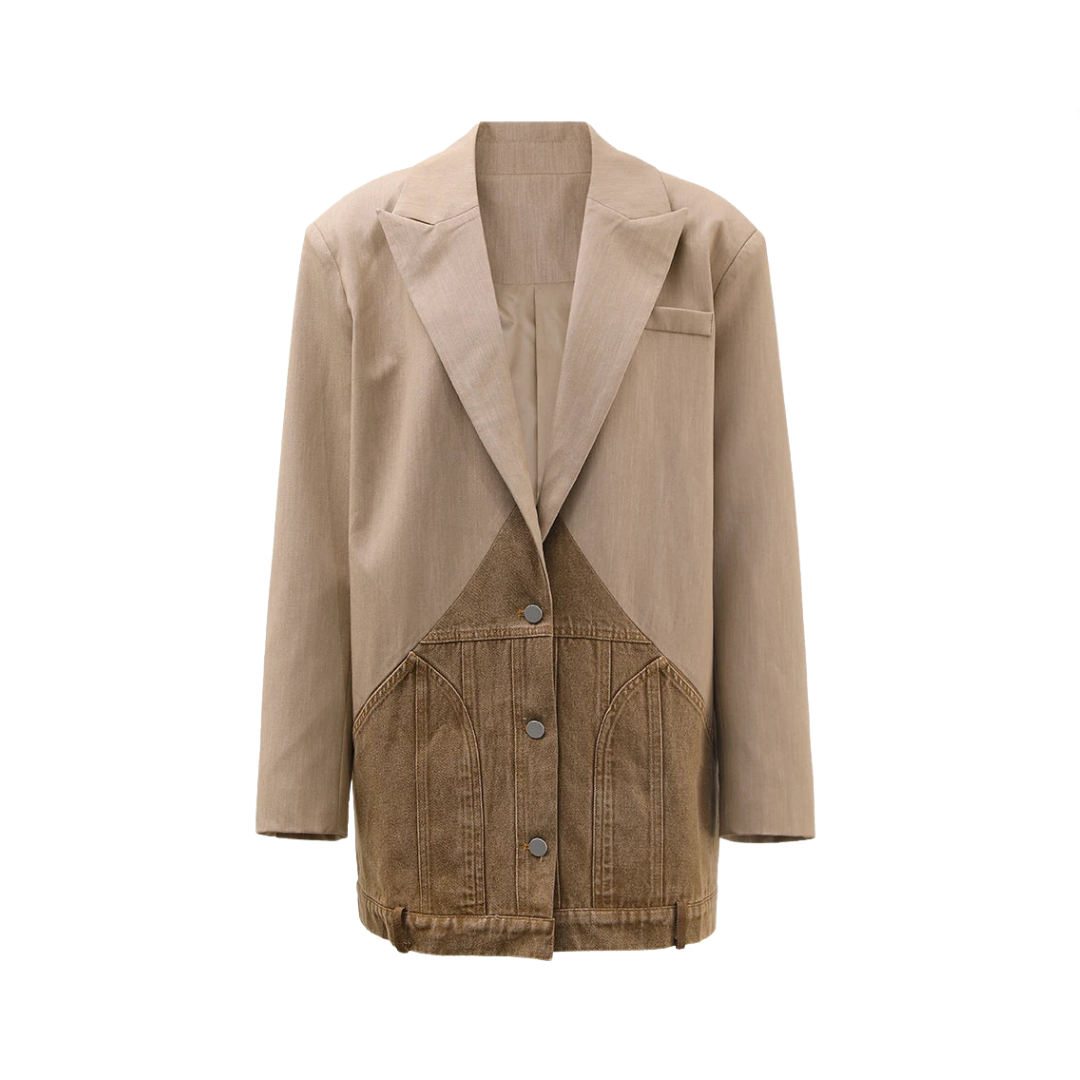 Expertly crafted with a blend of contrasting denim and unique patchwork. this blazer is a must-have for any fashion-forward individual. The bold colors and meticulous attention to detail make it a standout piece that effortlessly elevates any outfit.