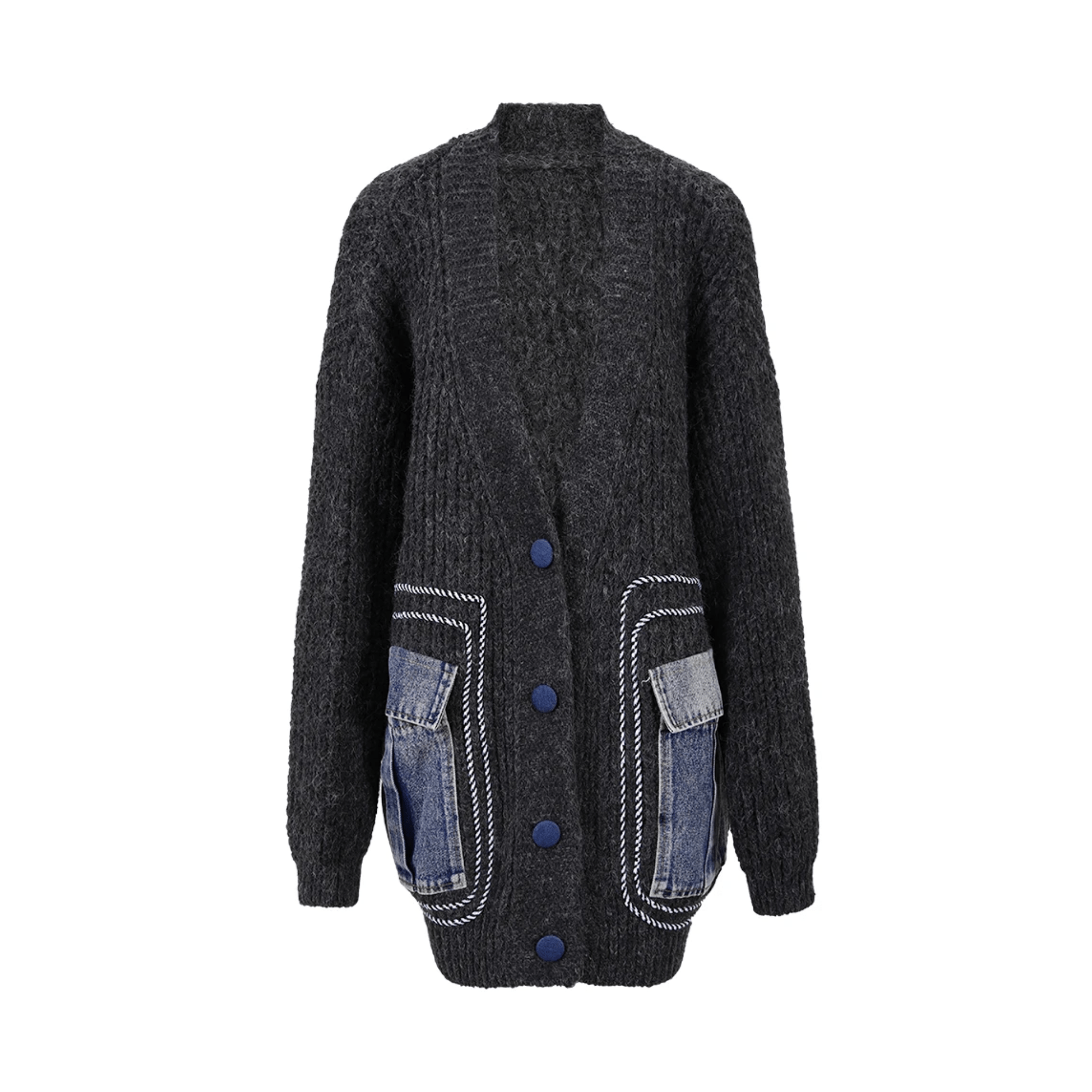 Denim Patch Pockets Knit Sweater