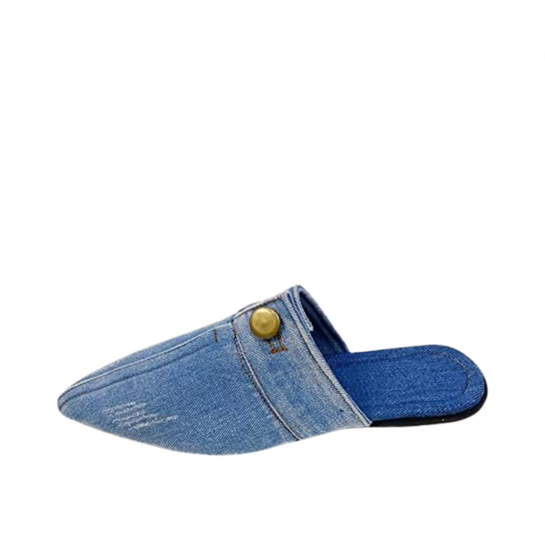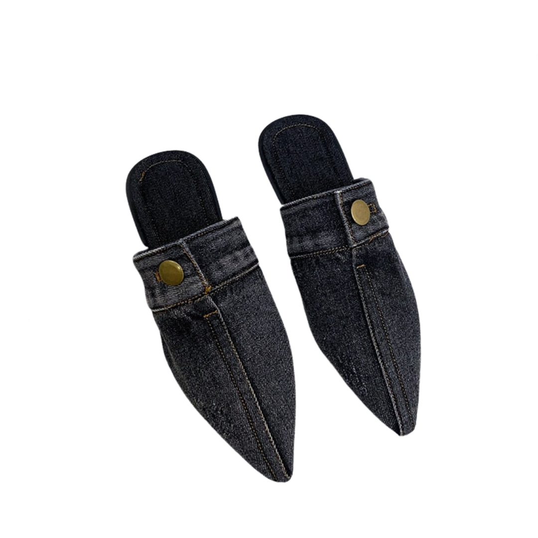Made with denim fabric. these mules add a touch of sophistication to any outfit. The pointed toe design elongates your legs and the flat heel provides all-day comfort.