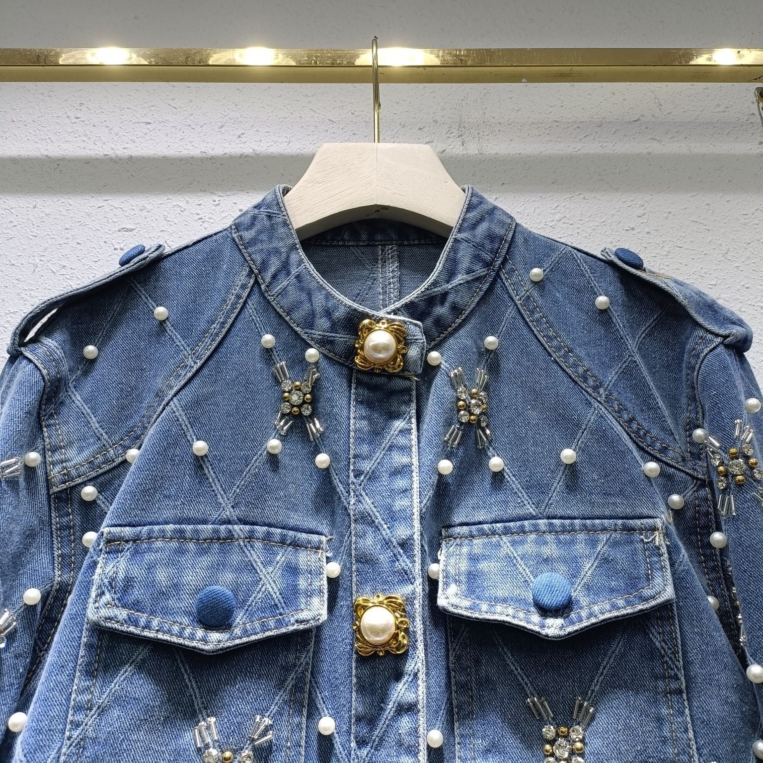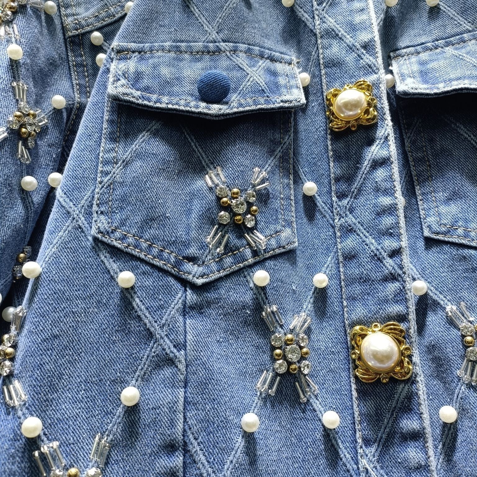 Featuring a unique design of diamond grid nail beads. this jacket will make you stand out. With its eye-catching details. you'll be sure to make a statement wherever you go.