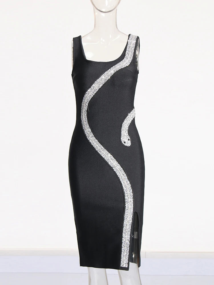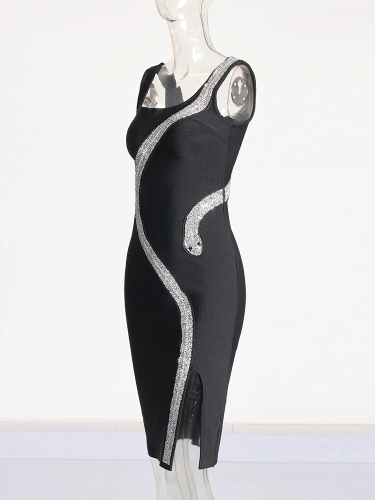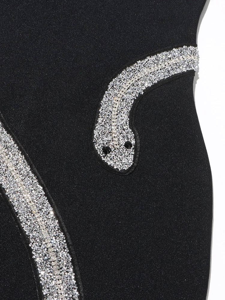 Enjoy the ultimate sleek and stylish look with the Diamond Snake Slim Fit Camisole Dress. The slim fit design highlights your curves. while the diamond snake detail adds a touch of sophistication.