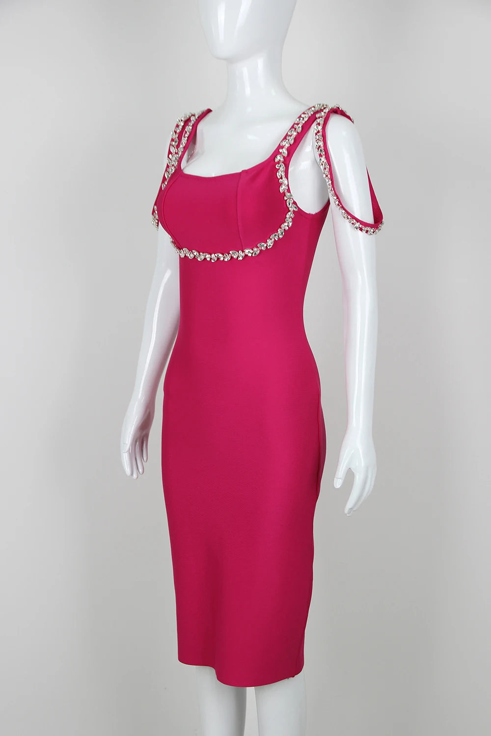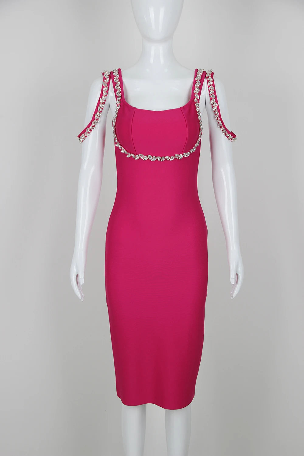 Expertly crafted with diamond embellishments. this spaghetti strap bandage dress is the epitome of elegance. Made with precision and attention to detail. it offers a flattering silhouette and unparalleled comfort.