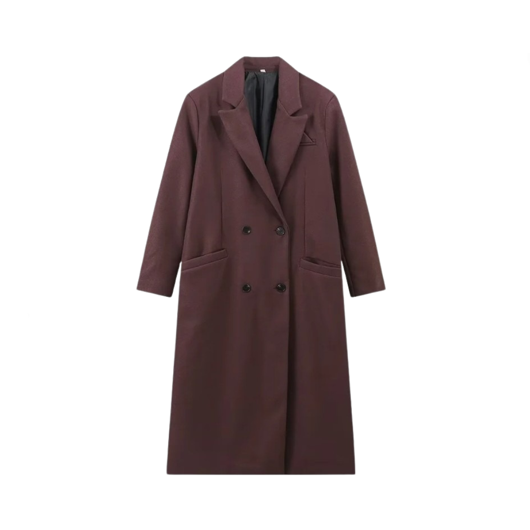 This double breasted padded shoulder lapel coat is a stylish and functional addition to your winter wardrobe. With its padded shoulders. it provides a flattering and structured silhouette. while the double breasted design adds a touch of sophistication.