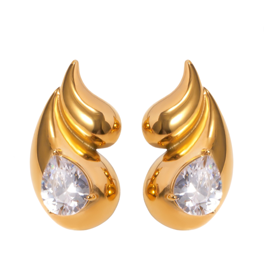 Unleash your inner elegance with our Double Layered Droplet Shaped Diamond Inlaid Earrings. Carefully crafted with stunning diamonds in a unique layered droplet design. these earrings are sure to elevate any outfit.