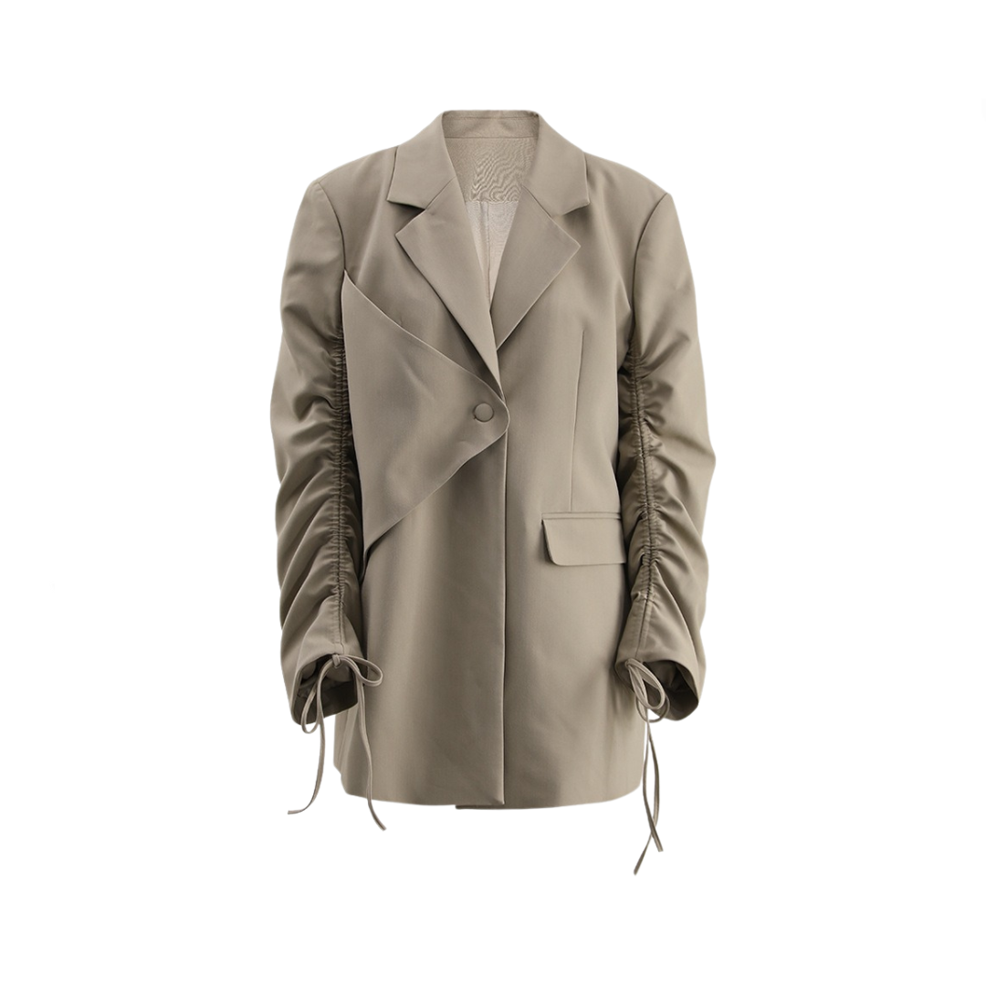 This Drawstring Irregular Sleeves Single Button Coat offers a unique and stylish design that is perfect for any occasion. The drawstring feature allows you to adjust the fit for ultimate comfort. while the single button adds a touch of sophistication.