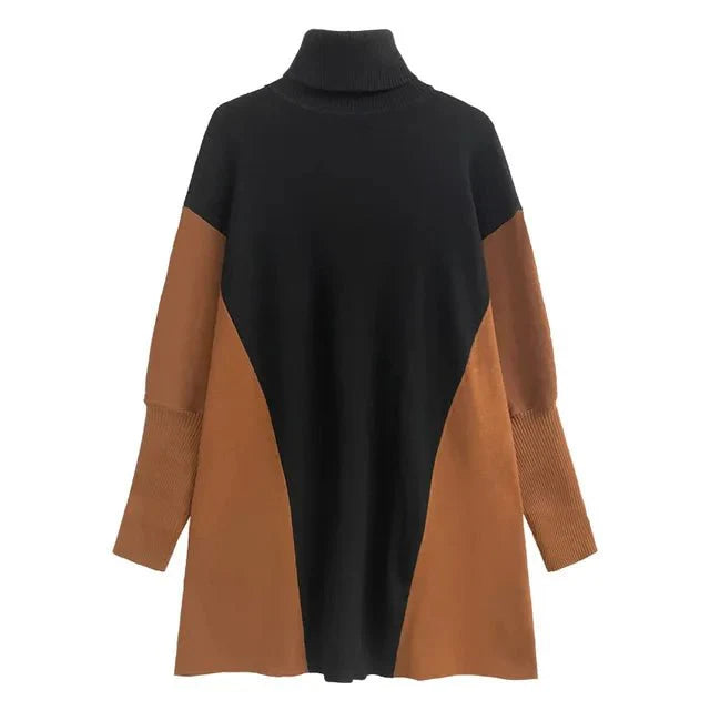 Dual Color Batwing Sleeves Turtleneck Sweater