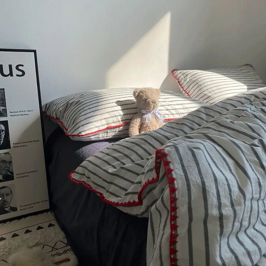 Duvet Cover Set Quilt Set Ins Nordic Minimalist Style Grey Strip Bed Set Of Four Pieces. Home Luxury Bedding Set Bed Sheets