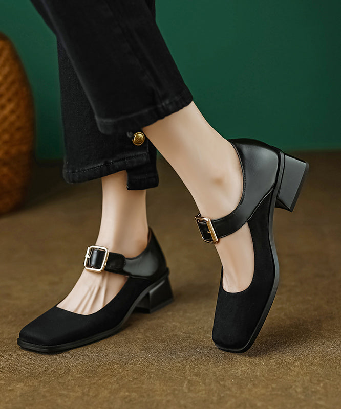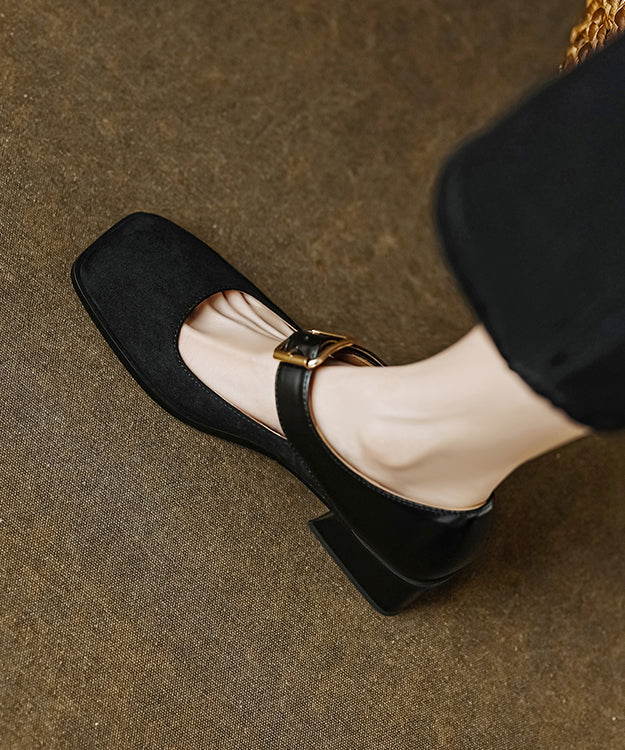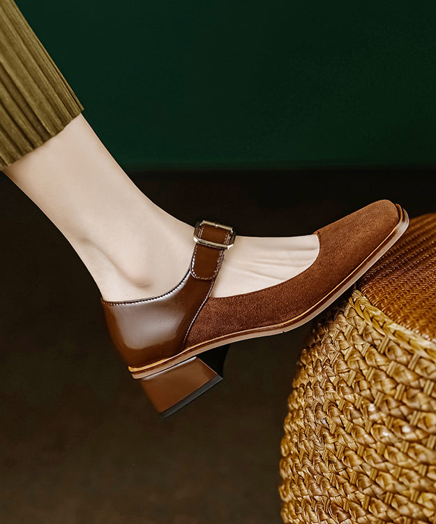 Elegant Apricot Suede Square Head Buckle High Heels