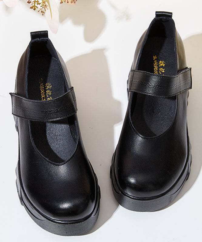 Elegant Black Cowhide Leather Buckle Strap High Wedge Heels Shoes