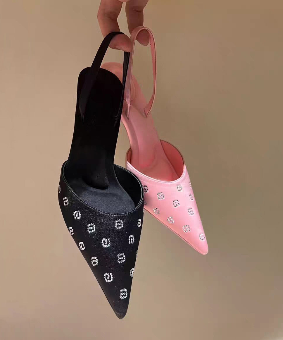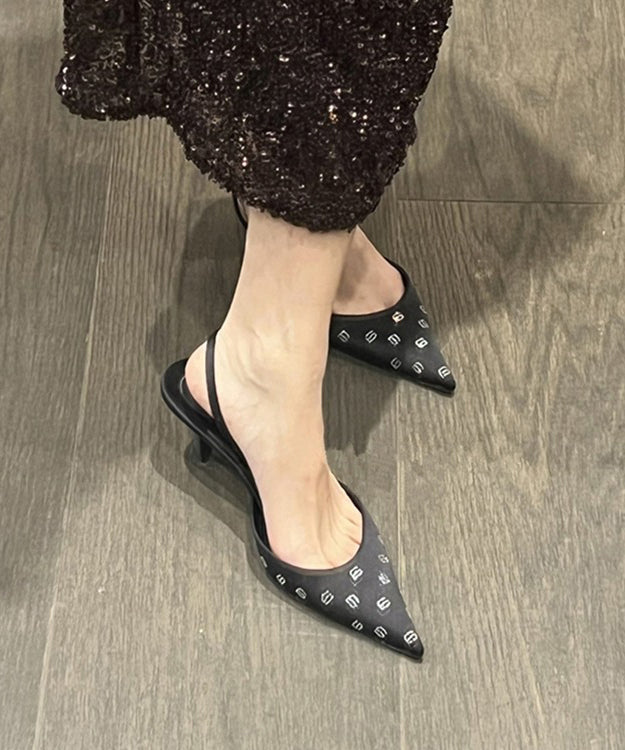 Elegant Black Stiletto Faux Leather Women Sandals Pointed ToeMade of:-Faux Leather Upper.-Rubber sole- cushioned insole.2.36"/6cm Stiletto Heel