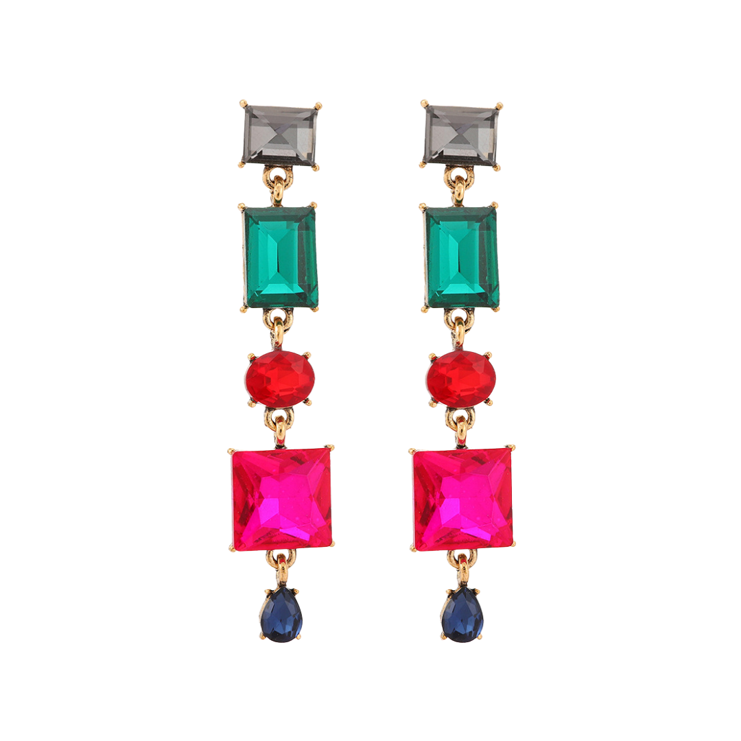 These earrings are crafted with crystals. adding a touch of sparkle to any outfit. With their elegant design and vibrant colors. these earrings are the perfect accessory for any occasion.