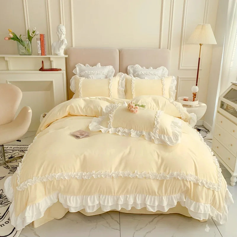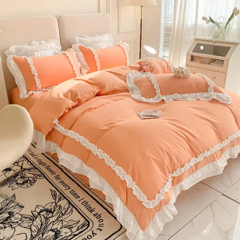 Elegant Lace Bedding Sets Luxury Bed Linen Princess Washed Cotton Ruffle Duvet Cover Bed Sheet and Pillowcases for Girl Luxury