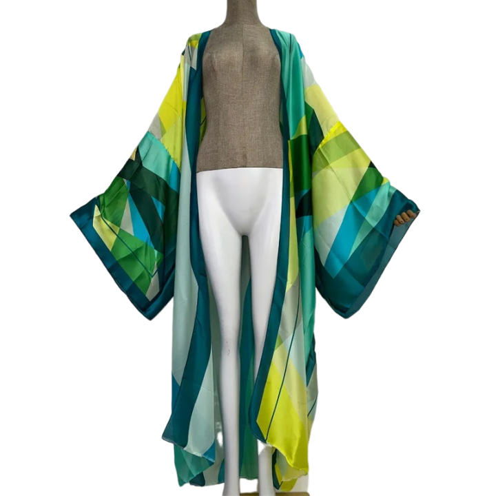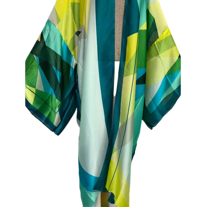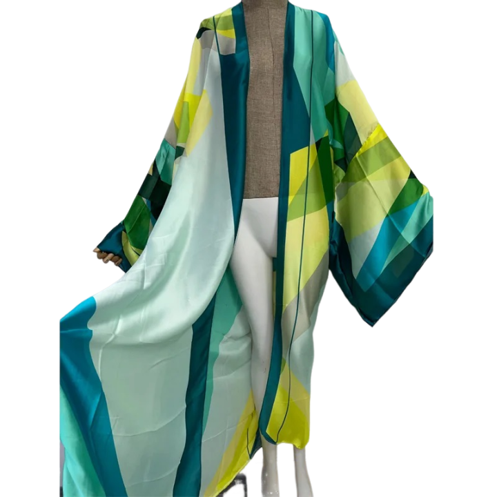 As an expert in the fashion industry. I bring you the Elegant Silk Kimono Cardigan. Made from silk. this cardigan exudes elegance and sophistication. Featuring a flattering kimono design. it adds a touch of style and comfort to any outfit. Upgrade your wardrobe with this must-have piece.