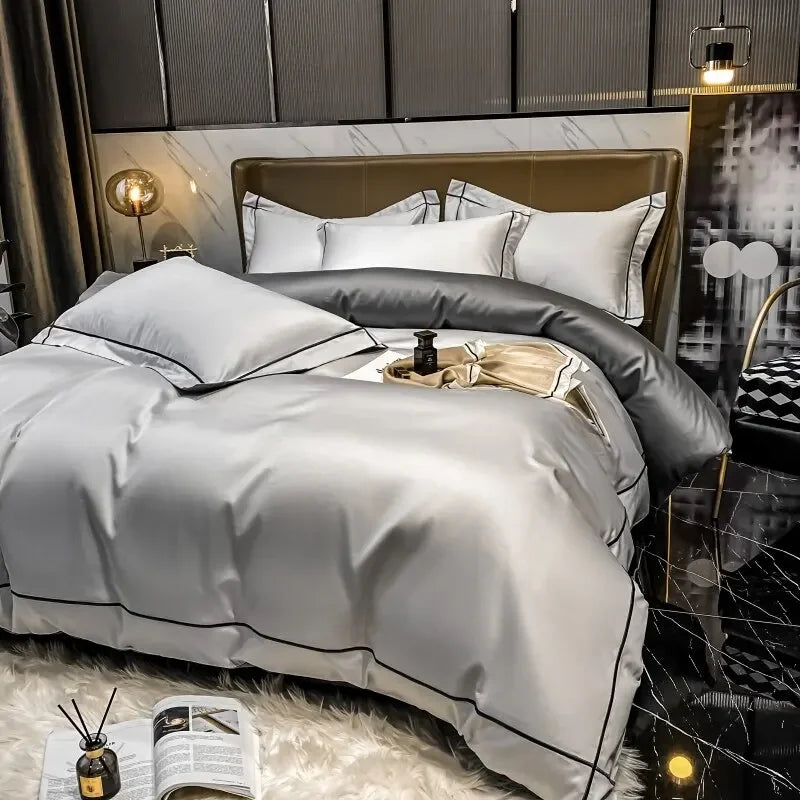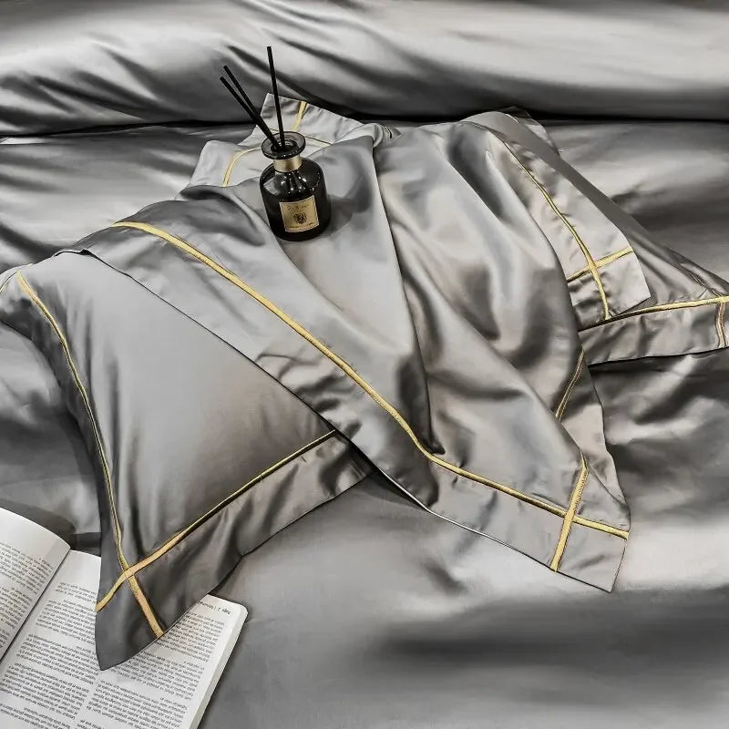 European Luxury Bedding Set Luxury Embroidery Washed Silk Duvet Cover Bed Sheets and Pillowcases King Size Bedding Set