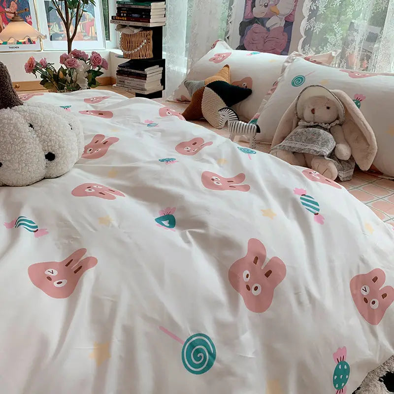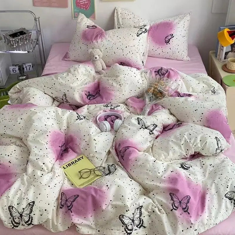 Fashion Duvet Cover Set Korean Ins Style New Flat Sheet Pillowcase No Filler Kids Adult Bedding Kit Twin Queen Bed Linen