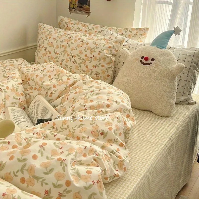 Fashion Floral Bedding Set Blue Pink Boys Girls Single Double Size Duvet Cover Kit No Filling Flat Sheet Pillowcase Home Textile