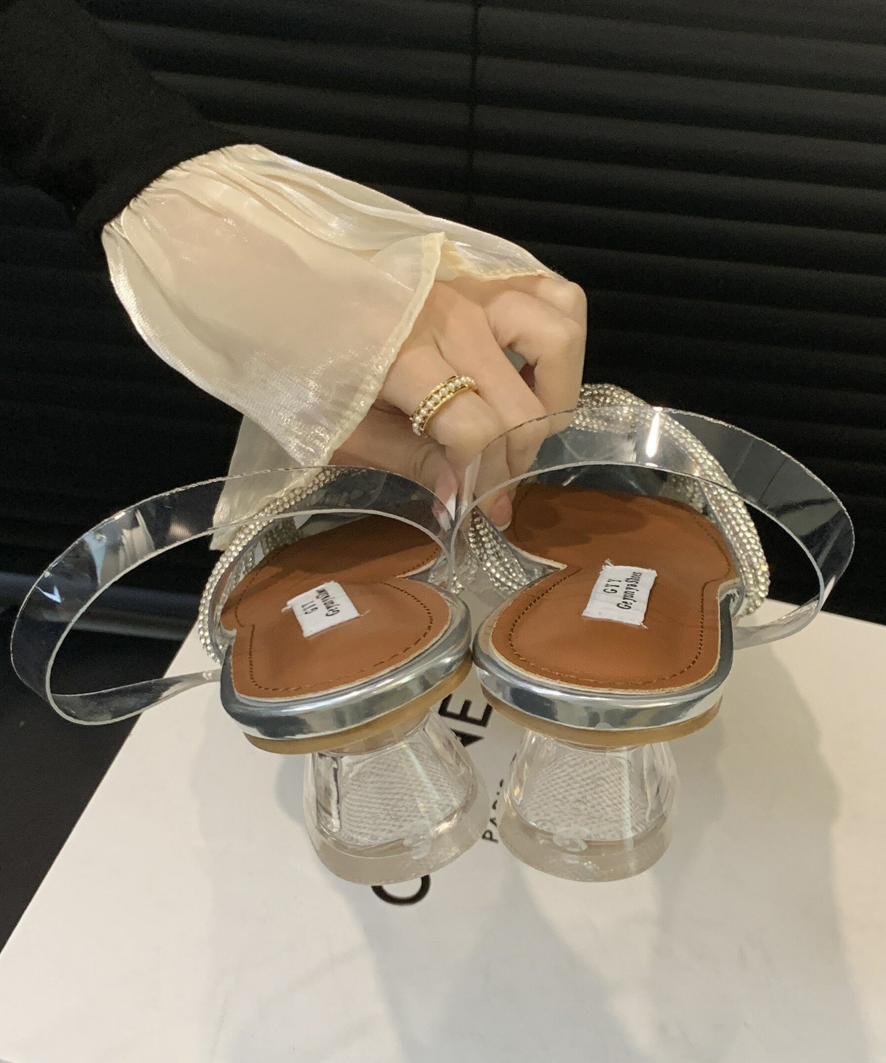 Fashion Silver Transparent Pointed Toe Zircon Slide Sandals