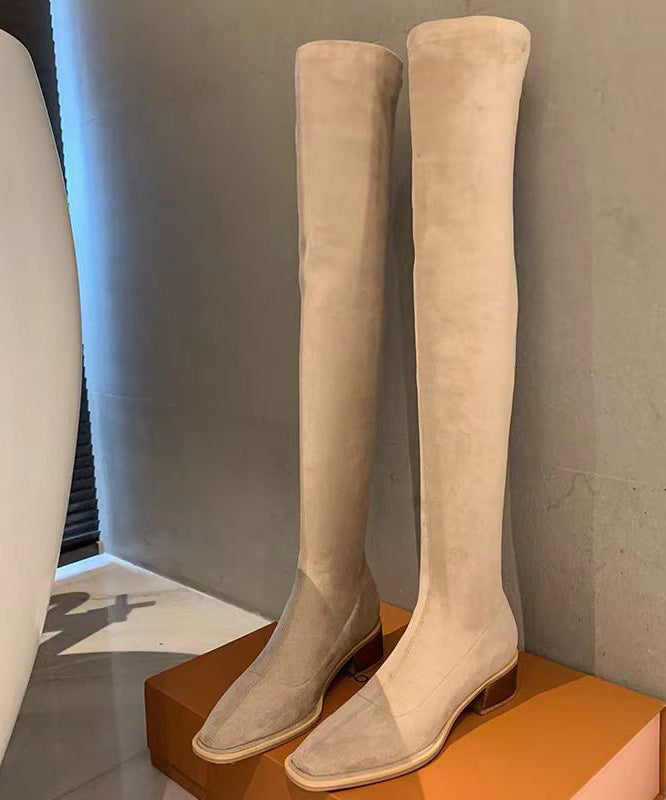 Fashion Versatile Black Elastic Fabric Chunky Knee Boots