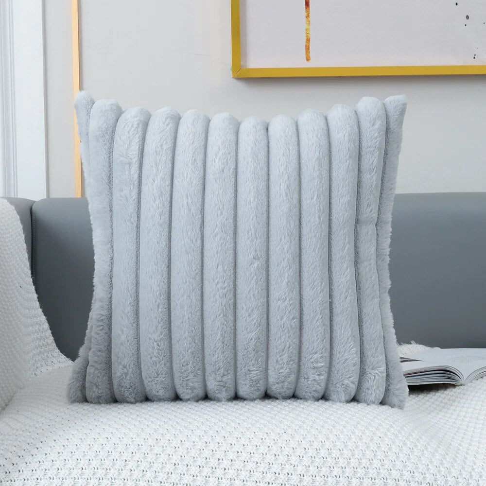 Faux Fur Cushion Cover Flocking Stripe Cushion Cover Pink Grey Orange Ivory Soft Home Decorative Pillow Cover 45x45cm/30x50cm